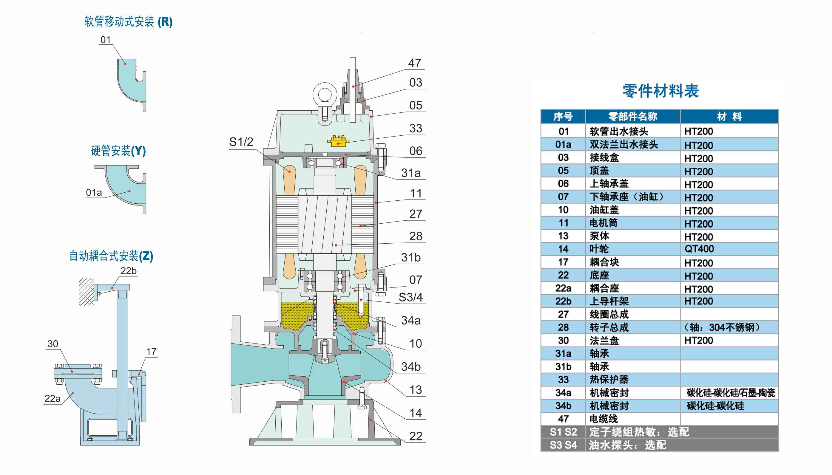 WQ系列双流道潜水排污泵结合了国内外同类优秀产品,经过PCAD软件优化设计而成,在水力模型、结构、密封、冷却和保护控制等方面进行了综合优化和创新设计。叶轮为双流道设计,有较大的进口和出口宽度,无堵塞性能好,高效节能,安全可靠,寿命长。